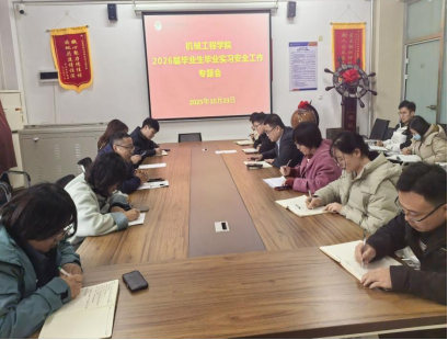 为切实筑牢毕业实习安全防线,全面保障2026届毕业生毕业实习平稳有序推进,机械工程学院于10月23日在知行楼216会议室召开2026届毕业生毕业实习安全工作专题会议。学院院长李锋、常务副院长魏红梅、副院长王桂伟、院长助理赵荣荣出席会议,各专业负责人及2026届毕业生辅导员参加会议。