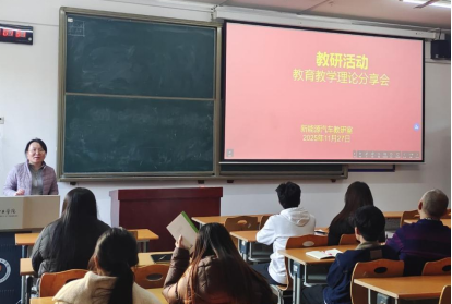 尹帮盛老师以“结构式教育教学理论的课堂实践与思考”为题做了分享,教师通过构建清晰、逻辑严密的知识体系,帮助学生形成系统化的认知结构。尹老师结合《汽车构造》等课程中的教学实例,生动展示了如何将零散的知识点串联成线、汇聚成面,从而有效提升学生的学习效率和综合应用能力。
