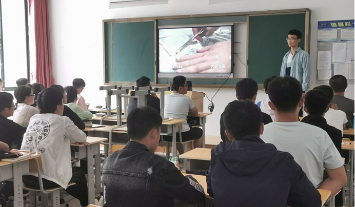 同时,学院邀请乜府祥、朱文静两位同学针对新生做了《大学生创新教育与榜样教育》主题讲座,乜府祥从创新创意大赛入手,深入细致解读了大学生如何养成创新意识,怎样实现创新。同时,也结合个人获奖情况,鼓励同学们努力学习,尽快成长起来。朱文静从个人角度出发,引领同学们如何尽快适应大学,并鼓励同学们要“勇敢”,要敢于“尝试”,要学会“坚持”,做一个“奋斗者”。