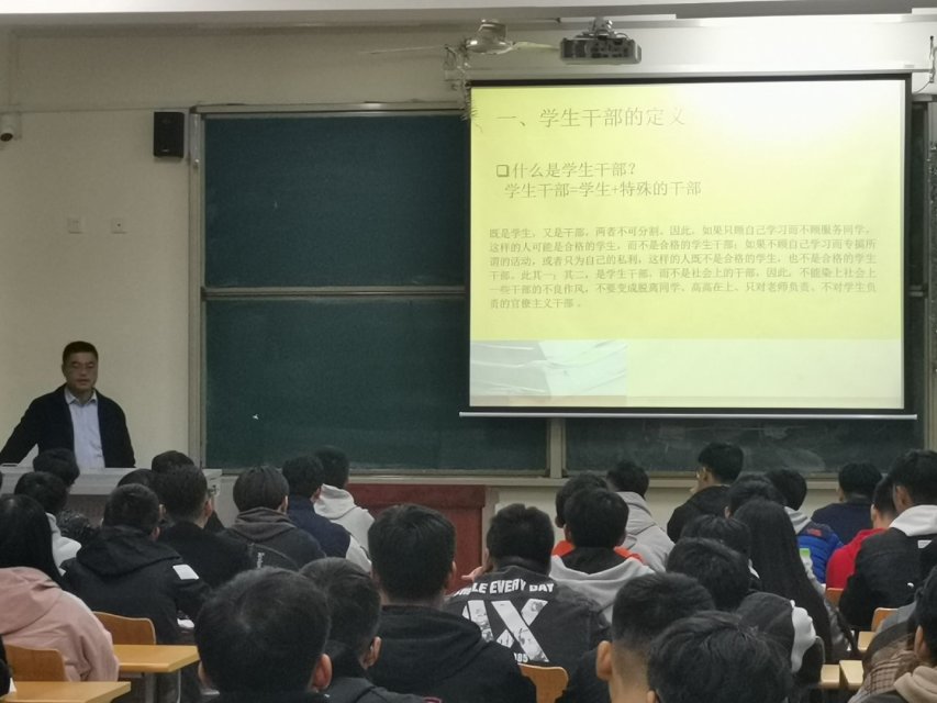 为了提高yl6809永利官网集团学生会整体办事效率,增强各学生干部办事能力。我院学生会于2019年10月27日至30日期间于10号楼109教室和21号楼302教室分别进行了学生干部培训。此次培训由学管院长王桂伟,学管科长张立峰及往届学生会骨干分别主持,yl6809永利官网集团学生会全体成员参加了此次培训。