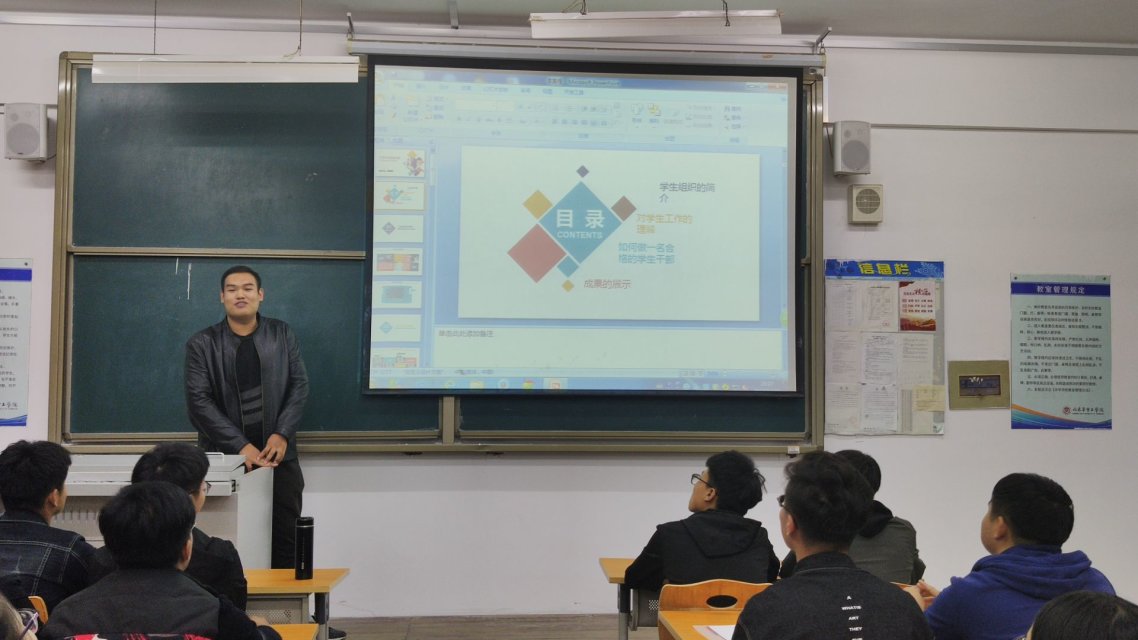 本次培训的内容主要有以下几个方面:学生干部的含义及定位;如何做好学生干部;学生干部应该具有的基本素质;各项报告的标准版书。会议中强调学生干部既是学生又是干部,应以学习为重。学生干部的宗旨是服务学生,服务老师,要具有良好的品德,做到以理服人,以德服人,更要善于发现自己的问题并及时改正。学生干部之间应当相互团结,相互帮助,共同协作,凝聚多人的智慧,接受多人的意见,努力将学生会建设的更加完美出色。身为学生会干部,应该竭尽全力培养干事,全心全意为学院工作做出奉献,自始至终秉持“为同学服务,锻炼自己”的初衷。培训的最后,主讲人从活动策划、活动简报、活动总结、文章编写格式、请假条格式、述职报告格式等十个方面进行了文章编写模式的规范。