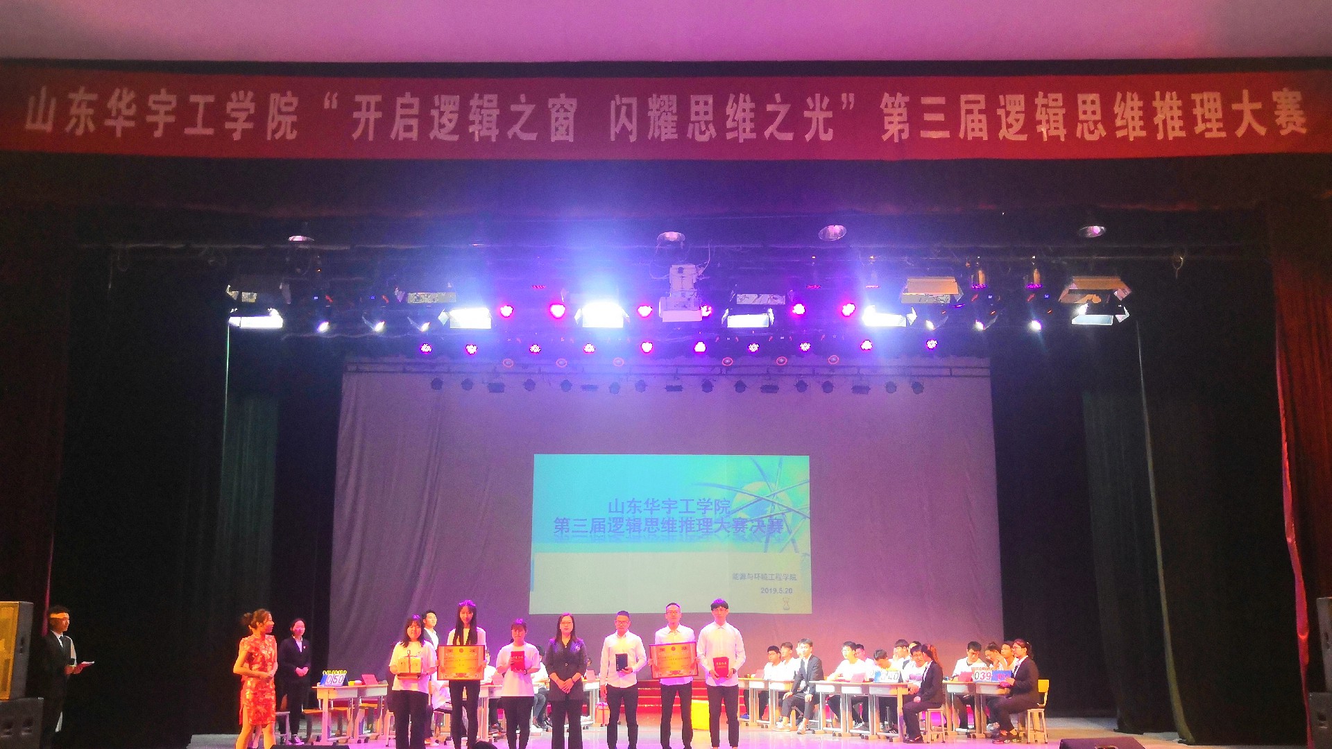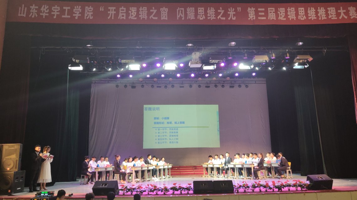 为了培养同学们的逻辑思维推理能力,提升同学们的综合素质,让同学们进一步了解逻辑思维推理的乐趣,感受逻辑思维推理的魅力。由山东华宇工学院能源与环境工程学院主办的“第三节逻辑思维推理大赛”,于5月20日晚7:20在华宇国际文化中心举行。出席本次大赛的有能源与环境工程学院院长魏丰君、学生工作处处长助理栗新燕、能源与环境工程学院院长助理马安会及各二级学院辅导员老师代表。