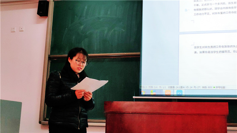 此次主题班会比赛选题丰富,涵盖学生心理、校园安全、就业指导各个方面。各辅导员以PPT为讲述载体,系统地将所要阐释的主题一一呈现,尽显辅导员风采。至此,辅导员主题班会比赛顺利完成。