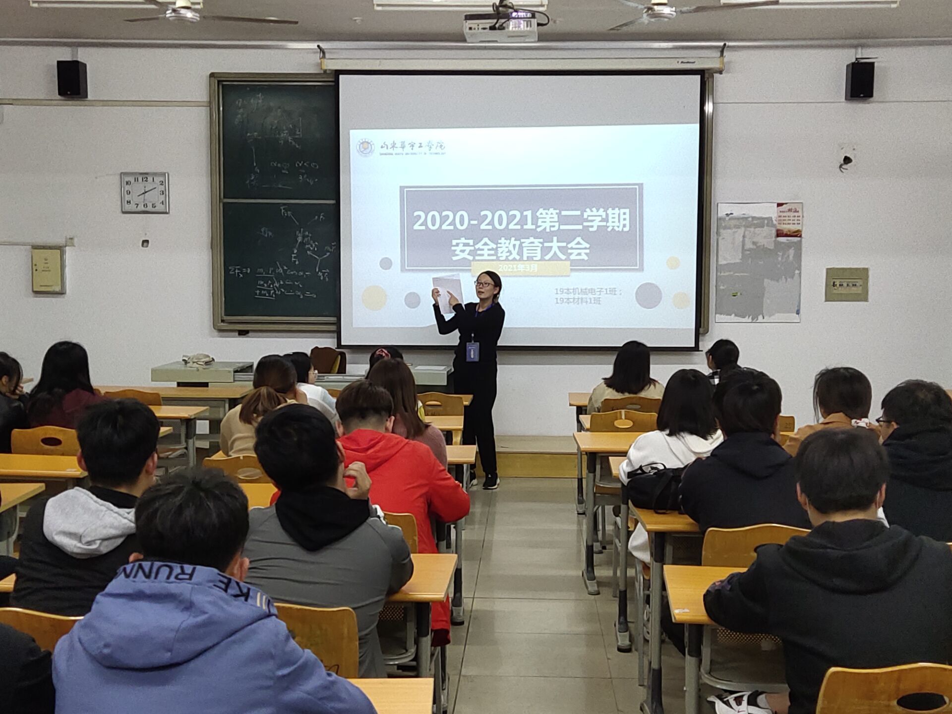为贯彻落实学校安全稳定工作的文件精神,确保学生人身安全和财物安全,为学生提供一个安全的学习、生活习惯,根据学院的计划安排,学院辅导员于2021年3月29日-3月31日在每个班级开展2020-2021第二学期安全大会。
