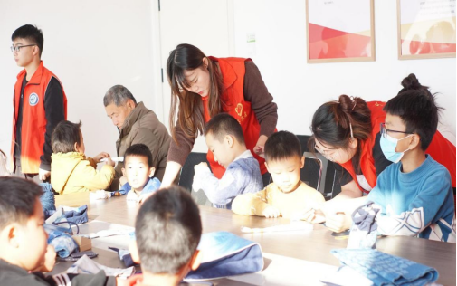 “传承古艺,编织幸福”---传统手工艺进社区志愿服务活动项目,有专业指导教师成立植染艺术工作室,以“百万大学生进社区”为平台,依托蓝染、 刺绣、拼布等民族手工技艺,集研发生产、培训、销售、教育教学、研学旅游等为一体,聚焦服务青少年群体,打造社区实践,非遗文化普及,以实践活动的形式,让青少年了解扎染历史和教学如何扎染、编织等传统手工艺,丰富青少年的文化生活,传播非遗文化。