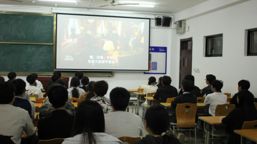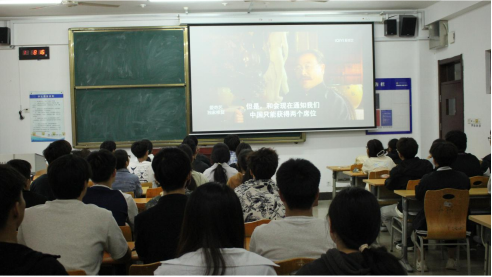 活动伊始,同学们有序入室、安静落座。随着电影《我的1919》的播放,影片中顾维钧在巴黎和会上据理力争、捍卫国家尊严的精彩场景,瞬间抓住了同学们的目光。跌宕起伏的剧情,生动展现了动荡年代先辈们为国家独立、民族尊严而不懈奋斗的伟大精神,现场氛围庄重而肃穆,同学们沉浸其中,爱国之情油然而生、不断激荡。