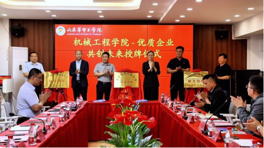 菏泽、济宁生源地招聘会期间,副校长侯建昌带队深入走访了优质企业,重点对接,深入了解企业用人需求,在人才培养、课程设置、实习实训等方面探索校企合作新模式、新途径,并与迪尔集团、山东霍爵领航工业科技有限公司、山东雷迈新能源车业有限公司签订学生实践就业基地。