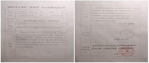 这次寒假实践,我收获颇丰。从专业技能提升,到行业认知深化,再到学会将理论用于实践、掌握团队协作与问题解决技巧,以及合理管理时间、应对工作压力,这些宝贵经验都将为我未来职业发展筑牢根基。此次返家乡社会实践,不仅是一次志愿服务,更是我成长路上的重要里程碑,激励我在专业领域不断探索前行。