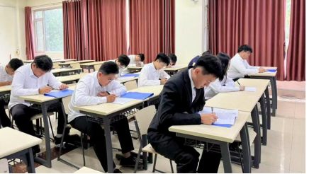 比赛选手结合适当的肢体语言与眼神交流,展现了良好的台风仪态。同时,比赛从“笔力”层面,考察选手对宪法的掌握及熟悉程度,所有参赛选手在指定场地集中作答,确保考核结果真实有效。