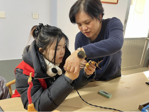 理论学习后,志愿者们开启烙画实践。起初大家颇为生疏,出现难控温度、力度不当、构图失衡等各种问题,但大家并未气馁,认真观察老师示范,反复请教控温、控笔技巧。老师耐心地一一指导,细心纠正问题并传授技法要点。随着练习深入,志愿者们逐渐找到手感,笔触愈发流畅,对温度和力度的把控也趋于精准,从小心翼翼勾勒简单线条,逐步自信尝试复杂图案。