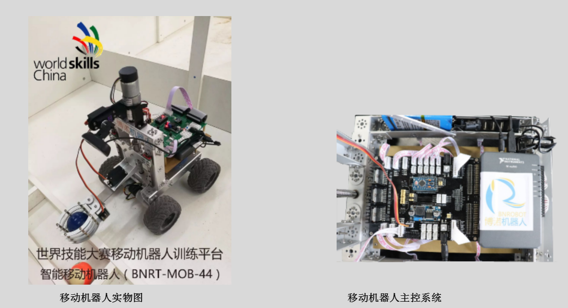 实训室(二)配有世界技能大赛移动机器人2套。可完成LabVIEW图形化编程软件使用训练,myRIO控制器开发,直流电机闭环PID调速,移动机器人机械结构搭建、场地分拣、视觉识别等训练项目。培养学生移动机器人编程控制、装配和调试能力、团队协作能力。