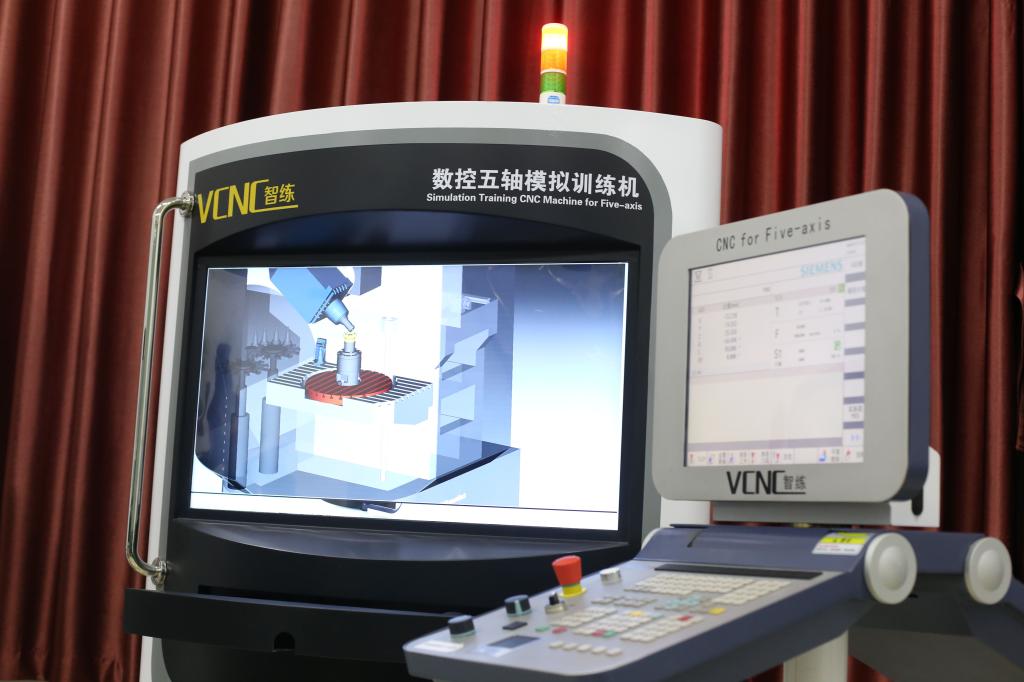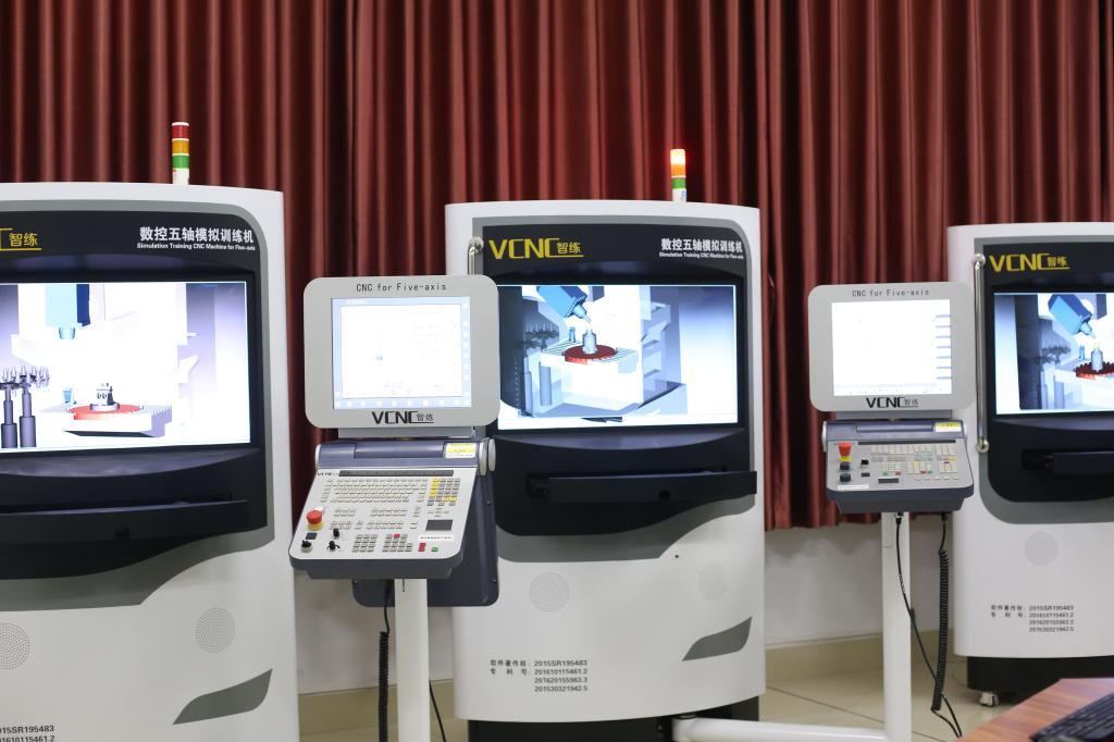 五轴数控机床模拟实验室是机械类专业实验室,配有数控五轴模拟训练机3台,教学计算机21台,NX 12.0软件21节点,多媒体设备1套。数控五轴模拟训练机配备海德汉iTNC530和西门子Sinum -erik 840D双数控系统模拟器和工业级Vericut数控多轴仿真软件,可完成数控加工自动编程、多轴数控机床模拟操作、3-5轴数控机床加工仿真等训练项目。培养学生数控加工自动编程与多轴数控机床操作能力。