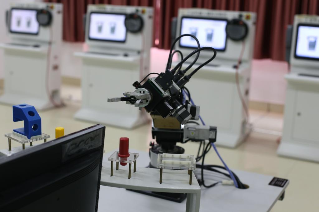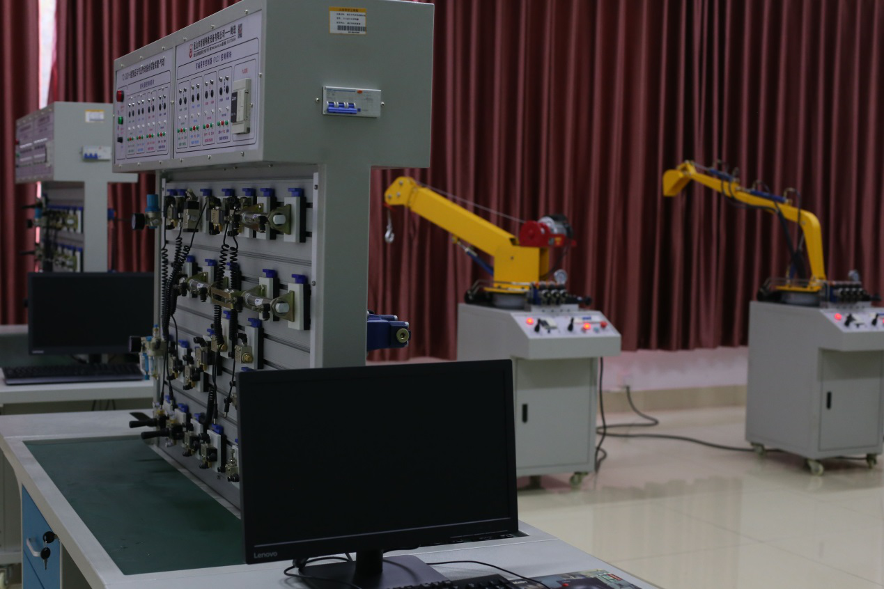 机器人编程与操作实训室配备有模块化可拆装机器人4套、工业机器人模拟训练机6套、机械手拆装实训装置4套。可完成模块化机器人机械本体拆卸和装配、机器人点到点运动轨迹规划与控制、FANUC、ABB、安川等多种品牌工业机器人真实示教编程训练,工业机械手拆装等实验项目。主要培养学生对机器人的编程与操作能力。