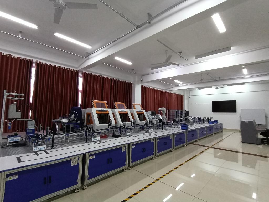 智能制造综合实训室配有ABB机器人、数控车床、数控铣床、AGV智能移动车、智能视觉检测平台、SCARA机器人智能装配平台等设备,以及与之配套的FMS、ERP、MES等管理软件。可开展智能化生产、智能制造、智能物流等实验实训项目,使学生能够体验工厂实习的效果。通过让学生参与实践,真实体验工业4.0和“互联网+”在生产制造企业的运营模式,增强学生的实践动手能力,提高就业竞争力。