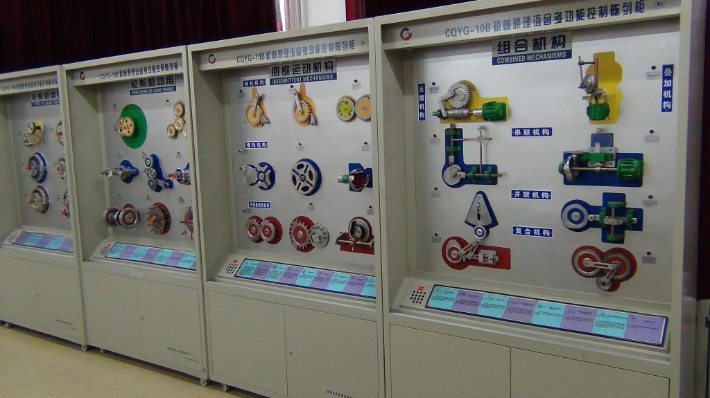 机械设计实验室配有机械设计语音多功能控制陈列柜10个、创意组合式铝轴系结构设计实验箱5套。可进行典型零件、联接、结构的演示分析及轴系结构的创意组合设计等实验项目。通过实验帮助学生形象认识机械零件的结构,理解机械运转原理,为学习机械设计相关课程及将来从事机械设计工作打下必要的实践基础。