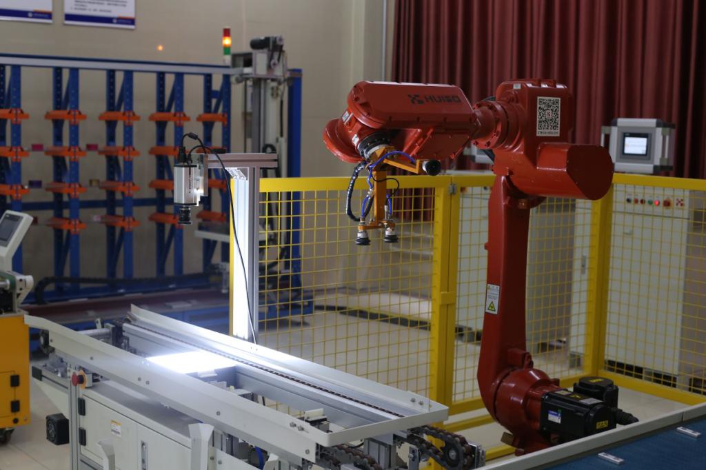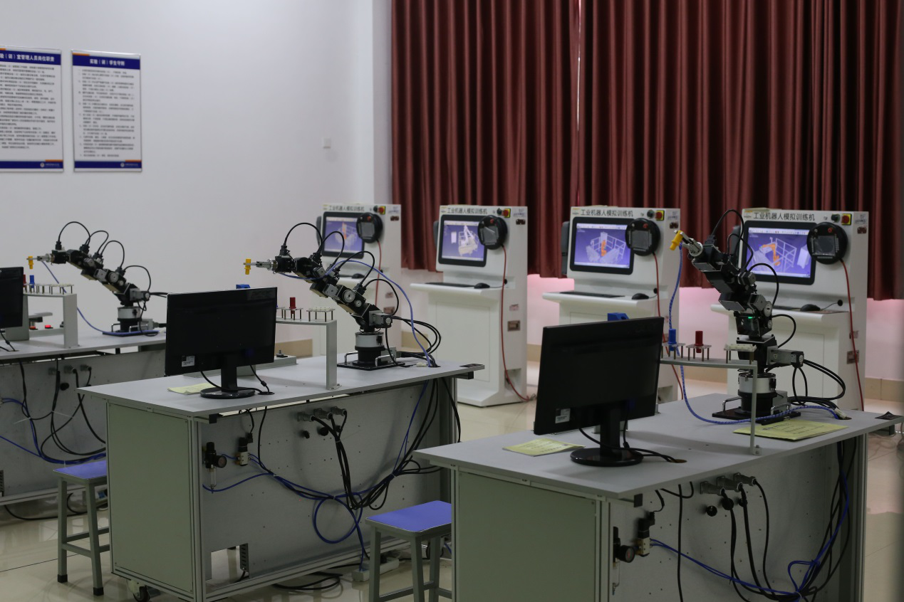 机器人综合训练实训室是机电类专业实训室。实训室(一)配备了工业机器人应用系统1套。可完成的主要实验项目有:机器人工业现场应用模仿(基本工作流程举例:自动上料、自动运料、机器人智能识别、取料、码垛、空载返回等)。主要培养学生对机器人的编程与操作能力、机器人视觉识别系统应用能力、机器人调试和维修能力,为学生今后从事机电类、机器人应用相关工作打下良好的基础。