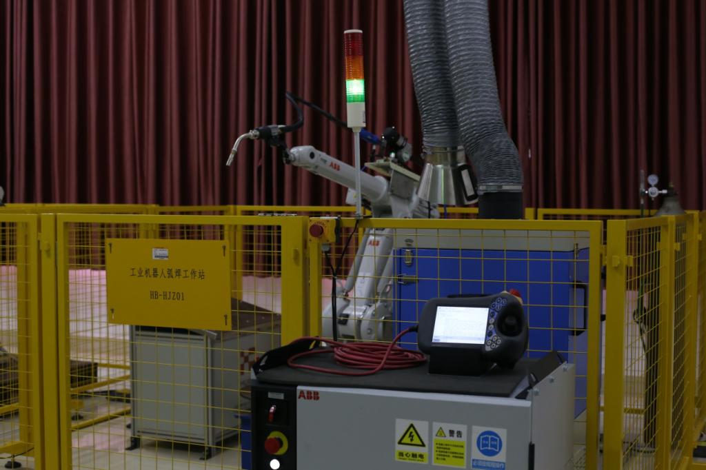 实训室(三)配有工业机器人焊接工作站、工业机器人抛光工作站各1套。可完成工业机器人弧焊、去毛刺、打磨、抛光,机器人设备操作与应用维护,电气控制柜布线、元器件选用,PLC编程控制及网络连接等训练项目。培养学生工业机器人的编程与系统测试能力、工业机器人操作维护能力。