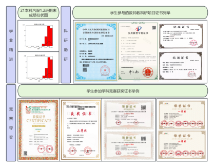 图5 学院教师专业素养提升情况 2.学生素养提升获显著成效 在学生素养提升方面,收获了比较明显的成效,学生成绩相比之前有了明显的提升,21本科汽服1.2班最高成绩为99分,优秀率分别达到了39.13%和36.17%,两个班级学生成绩及格率均超98%,整体考试成绩理想,展现出扎实的知识掌握程度与学习能力,各届汽车服务工程专业的学生不断有学生选择与汽车保险相关的题目进行毕业论文的撰写,据调查,21级本科毕业生有30%以上的学生从事汽车保险、销售服务方面的工作。汽车服务工程专业学生郑硕、孙俊莹、马加跃等汽服专业的学生积极参与学科竞赛,在竞赛中斩获优异成绩,凭借专业知识与创新思维脱颖而出,充分彰显了实践应用能力。同时,他们主动参与到教师的科研项目中,深度参与科研实践,在课题研究、项目推进等环节中锻炼科研思维,提升了解决实际问题的能力,实现了从理论学习到科研实践的跨越。成果推广工作通过多维度培育,不仅夯实了学生的学业基础,更在实践与科研领域搭建成长平台,有效促进了学生综合素养的提升,为培养复合型高素质应用型人才奠定坚实基础。