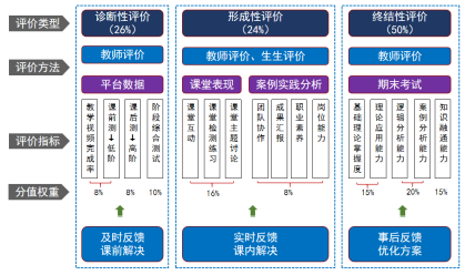 图2 教师教学素养提升具体措施 (2)AI赋能教学,构建三段式闭环教学 第一,《汽车保险与理赔》课程依托学习通教学平台,搭建了丰富的课程教学资源,现有课程视频670分钟,文档资料45个,题库题目701道,线上+线下、课内+课外,打破时间空间限制,实现资源与经验的共享,形成“线上预习-线下探究-线上巩固”的学习模式;基于超星学习平台的智能场景创设,实现知识图谱与AI助教技术在汽车保险与理赔课程中的应用,可以实现个性化学习,人工智能技术可以根据学生的个体差异,提供个性化的学习内容、学习路径和学习方式,帮助学生更高效地学习。AI助教还可以根据学生的学习特点和进度,为学生提供个性化的学习资源和练习,使学生能够更加有针对性地学习,这样可以很大的提高学习效率。 第二,结合国内外相关书籍、网站和国家一流课程等优质资源,以教材为基础,将内容分成基础知识认知模块、保险条款解析模块、理赔实务实战模块;再结合加大案例分析比重、深入剖析职业道德问题、加强行业合作,推进资源共享,使内容保持前沿化,使课程教学内容更丰满、前沿化。 第三,“课前+课中+课后”三阶段,课堂“问、思、导、析、汇、释”六步教学。对接岗位需求,以培养基础实、思维强、业务熟、德才备的高素质复合型人才为目标。以“一案四驱四位一体”课程设计理念为指导,教学采用“问、思、导、析、汇、释”的方式,依托学习通教学平台,实现课堂教学的“六个起来”。