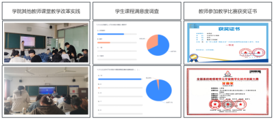 1.促进学院师资队伍专业成长 课程建设过程中形成的教师培训、教学研讨机制在院内广泛推广。课程组牵头组织了3次教学研讨会,围绕课程教学理念改进、教学模式创新、课程思政融入等主题,与学院教师深入交流,分享经验;同时,为20余名青年教师提供一对一教学指导,帮助其快速掌握创新教学模式,2024年有六名老师参加第十届全国应用型人才综合技能大赛获得二等奖、三等奖的奖项;在教学研究方面,课程组及其他学科教师在2024年申报了3项课程教学模式改革研究的校级教研项目,促进课程改革创新,提升教师教学研究的能力。通过这些举措,学院教师教学水平和教学研究能力得到双提升,形成了互帮互助、共同进步的良好氛围。
